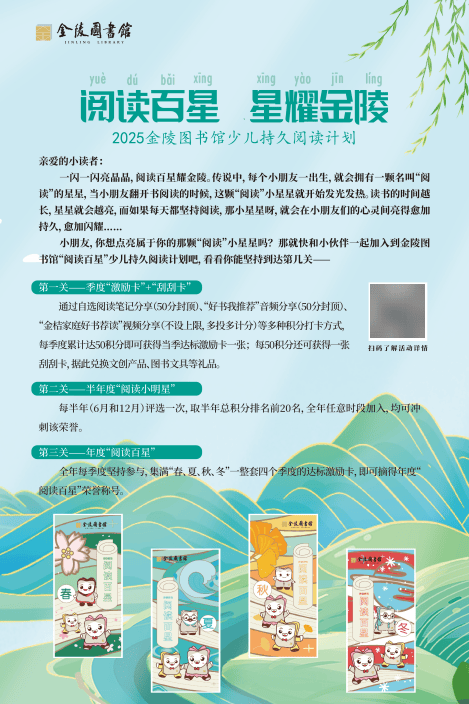 自2025年1月起,“阅读百星”——金图少儿持久阅读计划将持续升级。我们鼓励小读者与家长通过自选阅读笔记分享、“好书我推荐”音频投稿、“金桔家庭好书荐读”视频创作等多种积分打卡方式,积极参与线上阅读打卡与好书推荐。同时,我们将持续精选并推荐适合各年龄段少儿读者的优质主题书单,为参与活动的家庭提供更多样的阅读选择与参考。